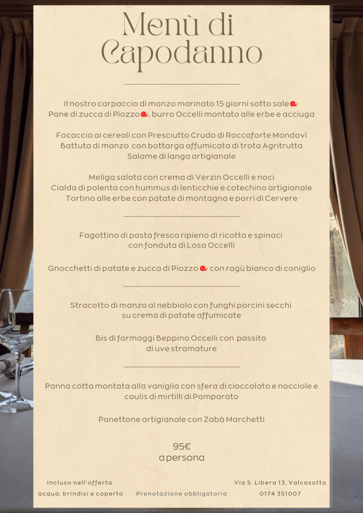 Un percorso gastronomico, dall’antipasto al dolce, che celebra i piatti più significativi degli ultimi anni, per brindare insieme all’inizio di un nuovo anno.